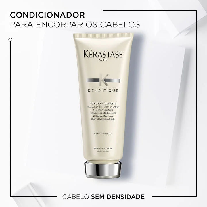 O Fondant Densité é o condicionador Kérastase engrossador de cabelos para quem sofre com afinamento capilar. O Condicionador Densifique foi desenvolvido para tratar os cabelos finos e ralos a partir do interior da fibra capilar. Este condicionador para fortalecer o cabelo contém Ácido Hialurónico para o cabelo, que oferece hidratação e resiliência para dar volume ao fio, enquanto os Minerais Intra-Cylane® proporcionam força e estrutura ao cabelo a partir do interior da fribra através de uma estrutura tridimensional, fazendo com que o cabelo fino pareça mais espesso. Este condicionador leve e sedoso para cabelos finos repõe a textura, a consistência e a resiliência do cabelo para um efeito encorpado imediato. Os cabelos finos e enfraquecidos são uma preocupação do passado com a ajuda de Fondant Densité, o nosso condicionador para cabelos enfraquecidos.