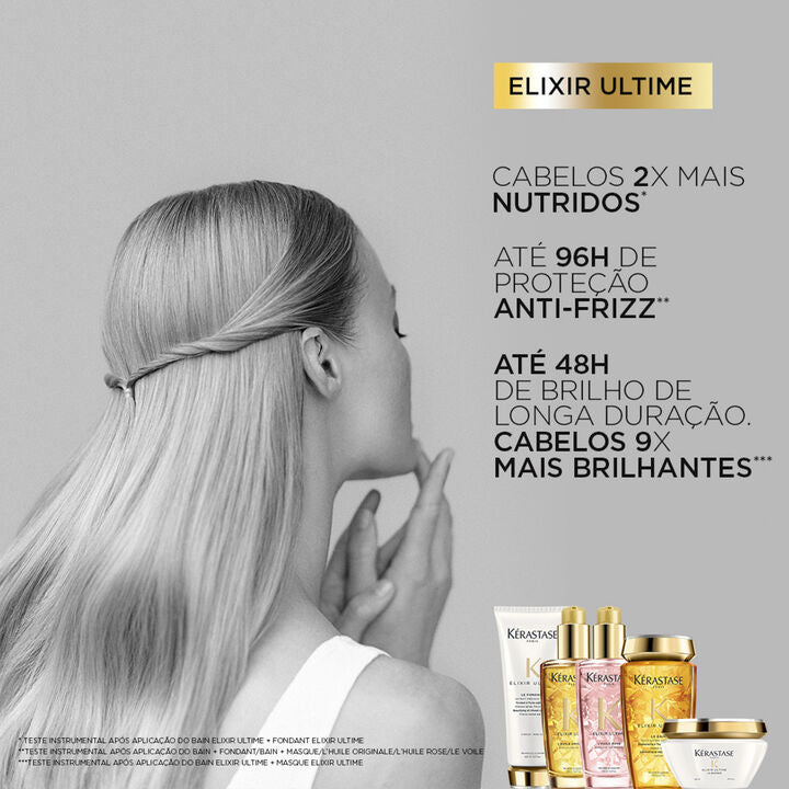O Elixir Ultime Le Fondant é um condicionador para fios finos a normais que contém 5 óleos preciosos, que suavizam e fortalecem instantaneamente os cabelos com uma nutrição duradoura e profunda de até 48 horas*. Sua fórmula única, enriquecida com a luxuosa mistura de cinco óleos preciosos que realçam o brilho dos cabelos, proporcionando uma nutrição intensa que penetra nas fibras capilares.
