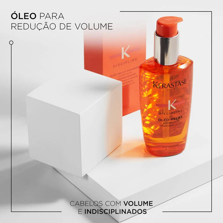 O Sérum Kérastase Discipline Óleo-Relax é um óleo capilar texturizante leve, infundido com o complexo Morpho-Oil composto de 3 óleos essenciais para controlar de forma duradoura o frizz e o volume provocado pela umidade para cabelos indisciplinados. Ele proporciona 24 horas de maleabilidade aos cabelos, mesmo sob 80% de umidade, deixando-os suaves e disciplinados para manter a forma perfeita pela manhã. Esse óleo leve protege os cabelos contra danos com proteção térmica de até 230 ºC . Esse óleo capilar nutritivo sela a umidade na fibra e garante que o cabelo fique liso e uniforme da raiz às pontas.