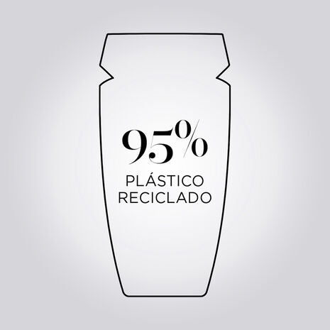 O frasco de Bain Hydra-Fortifiant com refil de 500 ml fabricado com 100% de plástico reciclado* em uma fábrica que utiliza 100% de energia renovável, pode ser recarregado com o estojo de shampoo associado, fabricado com -82% de embalagem plástica** em uma fábrica waterloop.