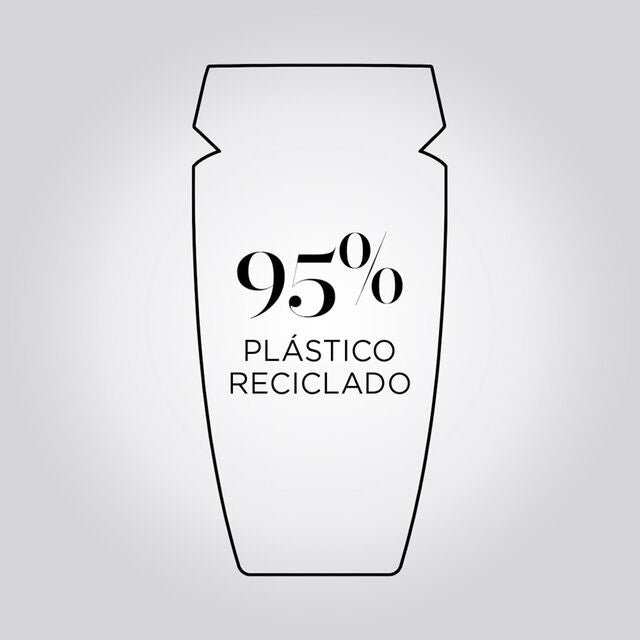 O frasco de Bain Hydra-Fortifiant com refil de 500 ml fabricado com 100% de plástico reciclado* em uma fábrica que utiliza 100% de energia renovável, pode ser recarregado com o estojo de shampoo associado, fabricado com -82% de embalagem plástica** em uma fábrica waterloop.